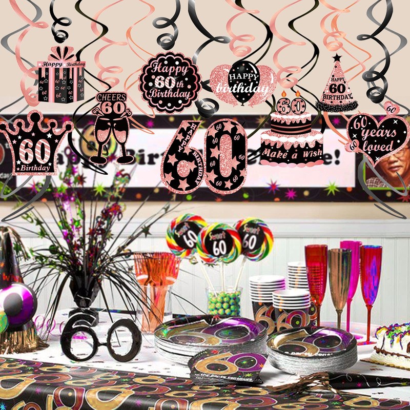 - Quality Material: made of quality card paper, not fragile and not easy to bend, double-sided printed; The 60th party foil swirls decorations come in black, and rose gold styles, 60pcs 60th birthday party hanging swirls are enough to be applied for many times in different occasions.