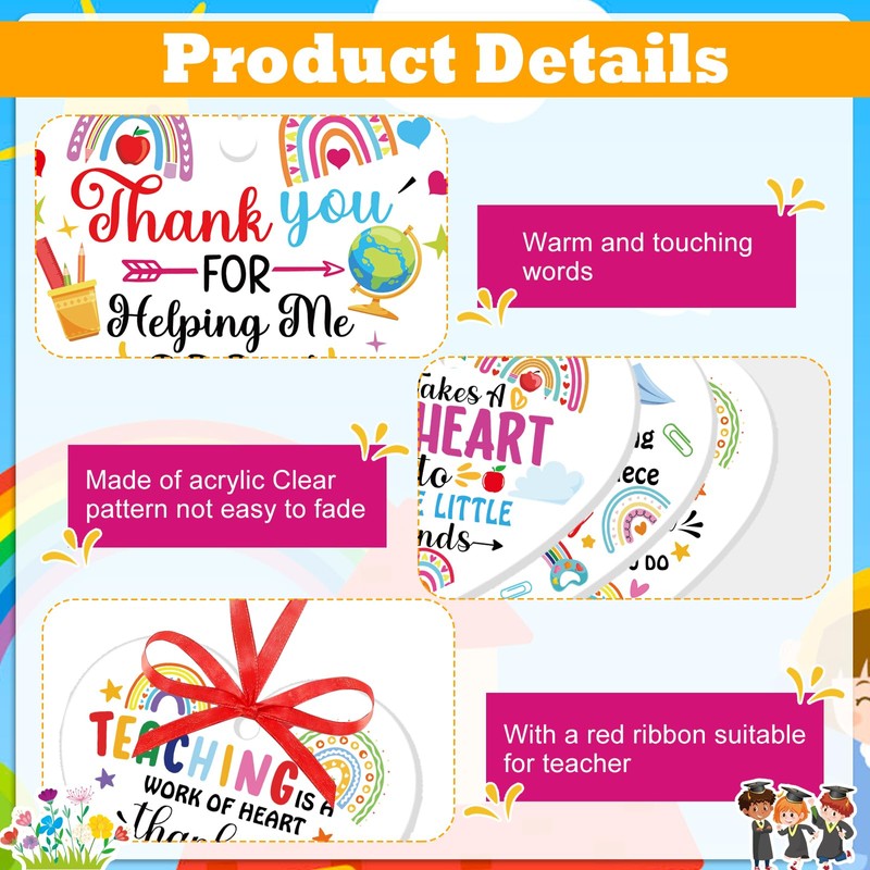 - Teacher Appreciation Gifts Heart Acrylic Ornaments: You will receive 6pcs Thank You Teacher ornaments attached with red strings. These Thank You Acrylic Plaque not only popular Teacher’s day ornaments, but also perfect for thank you gifts and bulk Teacher Appreciation Week keepsake.