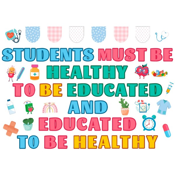- School Healthy Bulletin Board Set: Students Must be Healthy to be Educated and Educated to be Healthy bulletin cutouts for welcome back to school decor suitable for Healthcare Workers Nurses Classroom Decorations / Students Doctor Hospital Nursing School Kindergarten Back to School RN Party Wall Supplies / nurse school supplies / school nurse office decorations / nurse office decor / healthcare workers nurses classroom decorations.