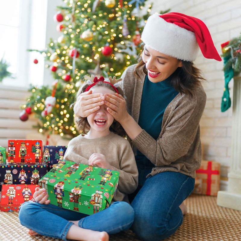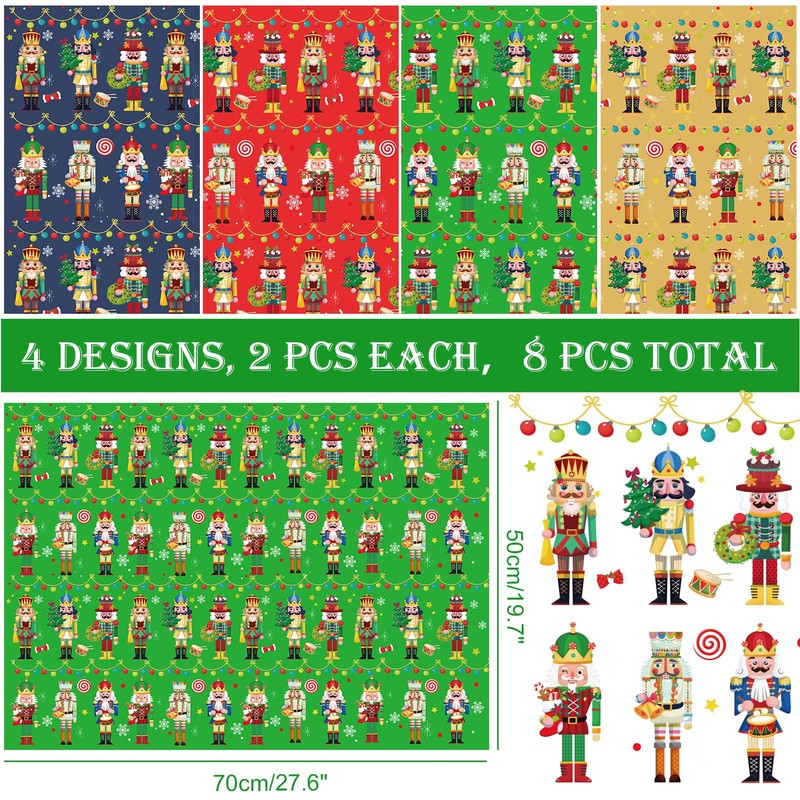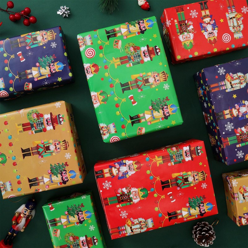 - 【Charming Nutcracker Theme Design】This Christmas wrapping paper set features 4 stunning and festive colors that will make your gifts stand out from the rest. Each design is carefully crafted to capture the spirit of the holiday season. And our wrapping paper showcases 6 different cute and funny Nutcracker characters, adding an extra touch of magic to your presents.