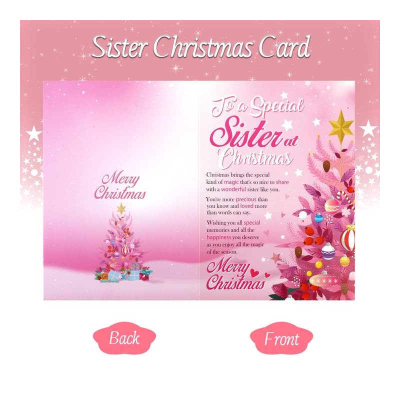 - A Perfect Way To Express Your Love: Our Sister Gifts for Sister Christmas Gifts takes care of you maybe a person who is not good at expressing your love and gratitude to your Sister, then our Christmas Cards for Sister will help you to show your love, " I Love You ", leave her an unforgettable memory at Christmas.