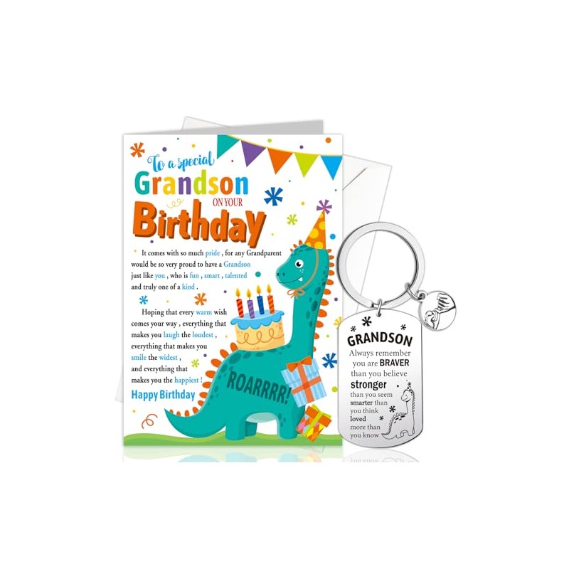 - A Perfect Way To Express Your Love: Our Happy Birthday Grandson Card Birthday Gifts for Grandson Keyring are great for expressing your love to your Grandson, then our greeting card will help you to show your love, leave her an unforgettable memory on her birthday.