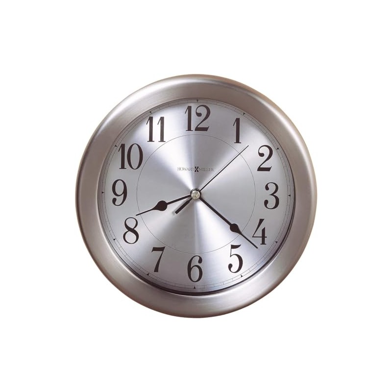Howard Miller Filer Wall Clock II 549-679 - 8.5-Inch Round Brushed Nickel-Finished Case, Modern Home Decor, Quartz Movement, 3-Point Secure Mount System
