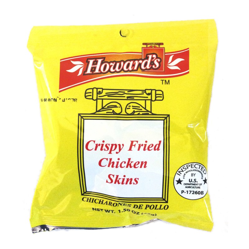 Howard's Crispy Fried Chicken Skins - Chicharrones de Pollo, 1.5oz, Pack of 4