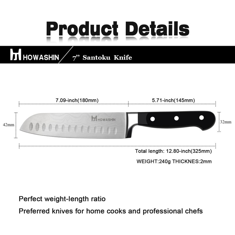 - 【❥7 Inch Santoku Knife】This Howashin's Santoku Knife has always been the first choice for both family and professional chefs. Because it basically solves the kitchen size problem and is very popular for all kinds of cooks.