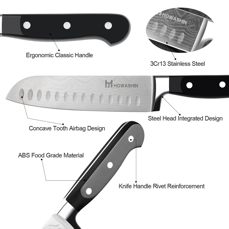 Howashin 7'' Santoku Knife High Carbon Kitchen Janpanene Stainless Steel Sharp Chef 's Knife Ergonomic Handle With Christmas Gift Box