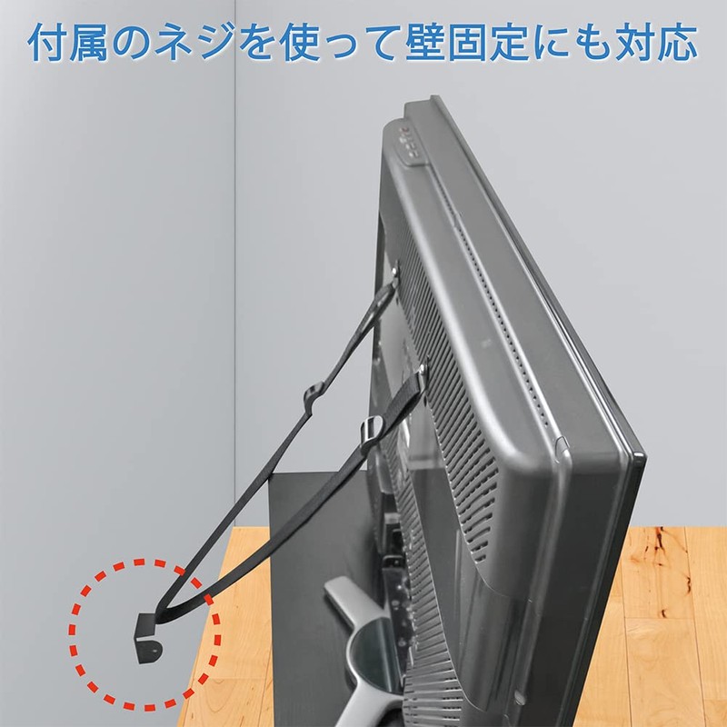 - [Fall Prevention] By securing the VESA hole on the back of the TV and the TV stand with a belt, it prevents it from falling over due to earthquakes, etc., and prevents injury from falling and TV failure. It can also be used to prevent children from falling over