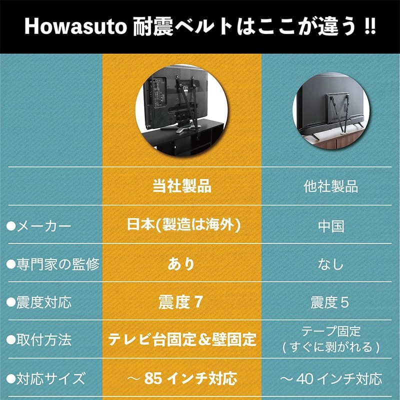 Howasuto TV Fall Prevention Belt (Supervised by Active Duty Disaster Prevention), Supports 7 Seismic Intensity, Supports up to 85 inches, Earthquake Countermeasure, Earthquake Proof (Camp Type)