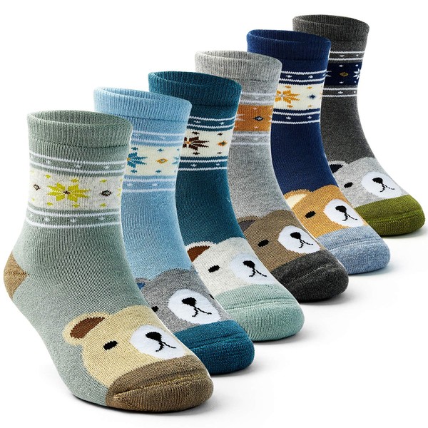- [Kids Winter Socks Essential] This 6 pack of multi color boys socks are crafted in high quality cotton, they’re ultra thick and warm socks with full terry lined. Cotton-rich fabric helps keep little feet stay fresh and breathable for all day foot wear.