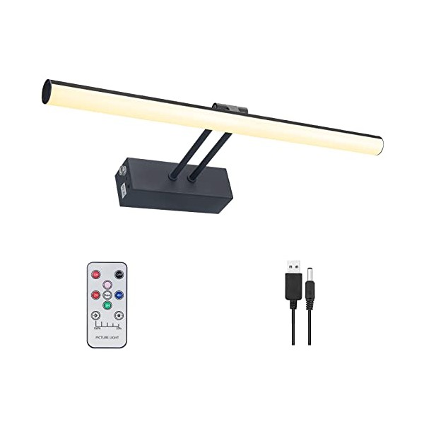HOWMZON Wireless Picture Light, Battery Operated Picture Light with Remote, 16" Full Metal Art Light for Paintings, Head Rotatable Rechargeable Display Lamp for Wall Gallery Dartboard