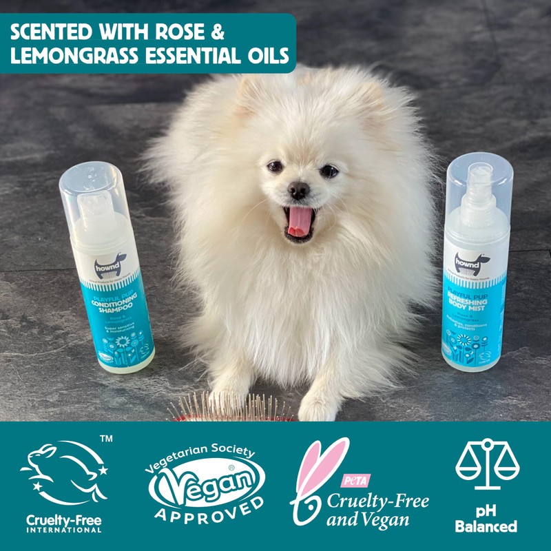 - DOGS LOVE HOWND: Our super sensitive and moisturising shampoo is specially desinged to gently wash away dirt and odours from your puppies delicate coat. It also contains Rose, Lemongrass, Argan Oil and Aloe vera to leave your pup smelling amazing. Follow with HOWND body mist for a long-lasting fresh fragrance!