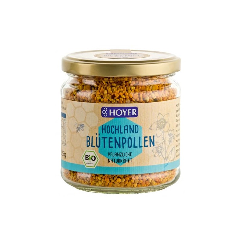 Hoyer organic flower pollen comes from bee colonies of selected highland beekeepers who work and are controlled according to the strict guidelines of the EU Organic Regulation for beekeeping. The original and diverse plant world of these landscapes gives this flower pollen its typical taste and makes it so valuable. Flower pollen is an excellent supplier of high-quality, vegetable protein. Processing aids not used certification/German state organic seal EU organic seal