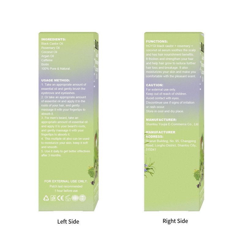 - Natural and Pure Ingredients: HOYGI 6-in-1 Black Castor Oil formulated with natural ingredients including Black Castor Oil, Rosemary Oil, Coconut Oil, Argan Oil, Caffeine, and Biotin. These ingredients work together to thicken and strengthen your hair, eyelashes, and eyebrows. These ingredients are extremely gentle and have a pleasant scent