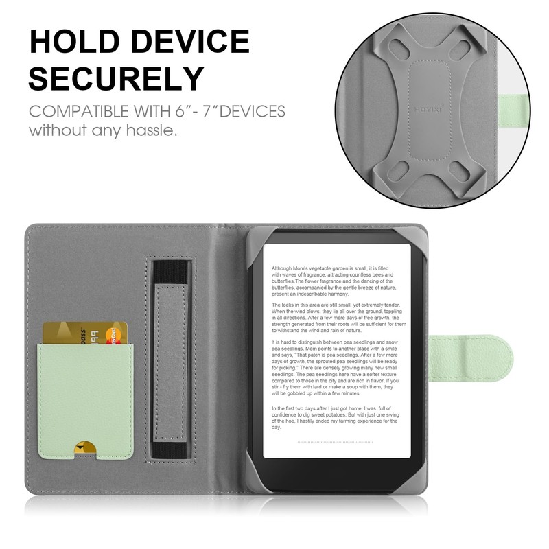 HoYiXi Universal Case for 6.8-7 inch Kindle eReader Compatible with Paperwhite/PocketBook and Tolino/Kobo Clara 2E/Kobo Clara HD,6",6.8" eReader Protective cover Built-in pocket,green
