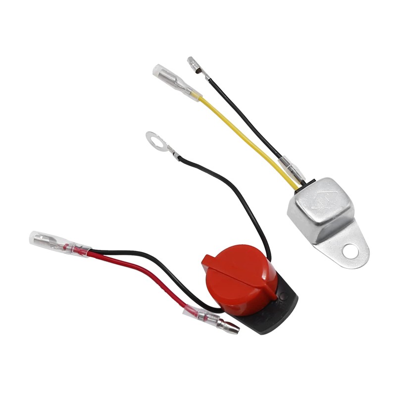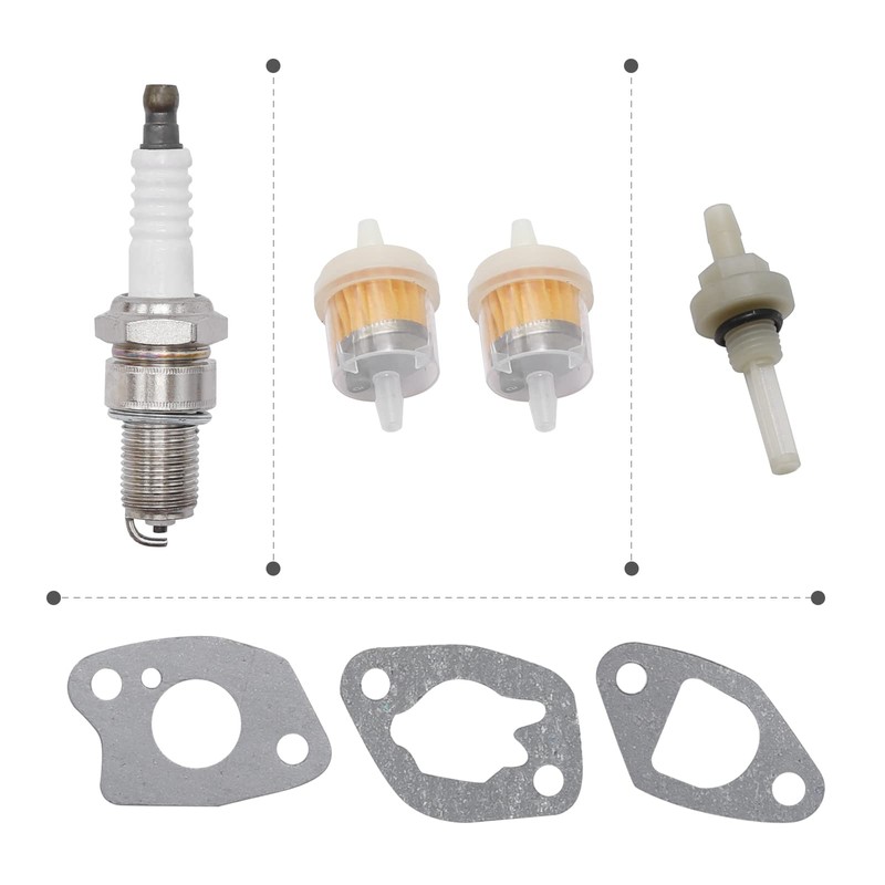 - Package Included: 1 x Carburetor; 1 x Air Filter; 1 x Fuel Gas Tank Joint Filter; 1 x Choke Level; 1 x Spark Plug; 1 x Low Oil Alert Sensor; 1 x Ignition Coil;1 x on/off Switch;3 x Gaskets.