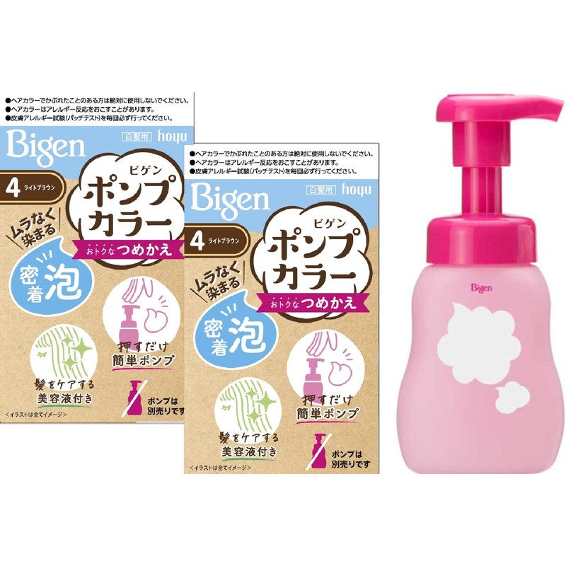 Hoyu Bigen Pump Color 4 4 (Light Brown), 2 Refills + 1 Exclusive Empty Bottle Included