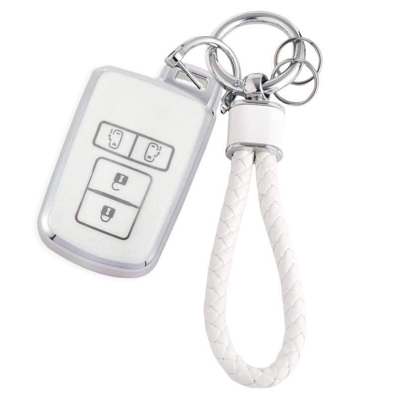 HOYZE Key Case, Key Cover, Cute, Car, Smart Key Case, Braided Leather, Key Chain, Carabiner, Key Shell, Scratch Resistant, Lightweight, silver white
