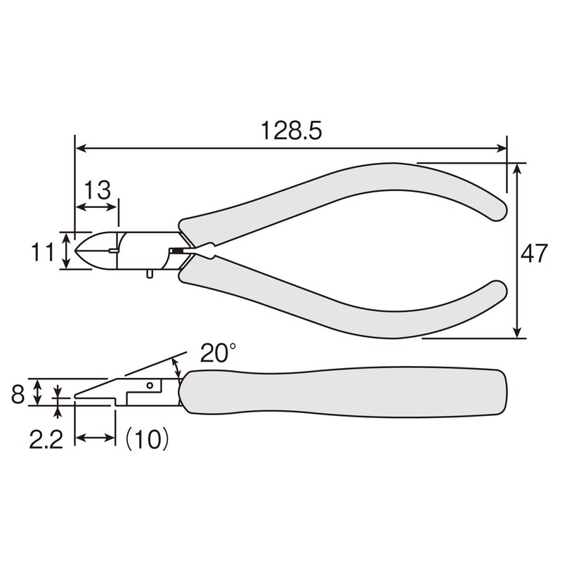 • Cutting capacity is 0.06 inch (1.6 mm) in diameter of copper wire, 0.1 inch (2.0 mm) in diameter of copper wire. The blade has a shallow angle (sharp angle) finish that makes the handle weight lighter when cutting, and has excellent sharpness