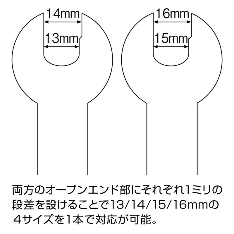 - Four cone wrenches in one, thanks to the stepped jaw design