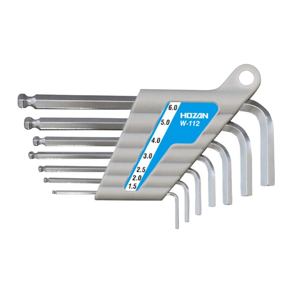 Hozan W-112 Ball Point Wrench Set, Short Length, Set of 7