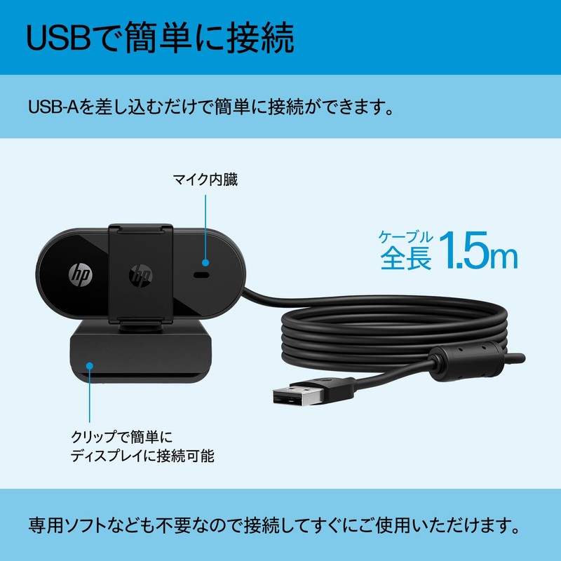 HP 320 FHD Webcam, 1080p, 30fps, Fixed Focus, Single Microphone, USB Type-A, ...
