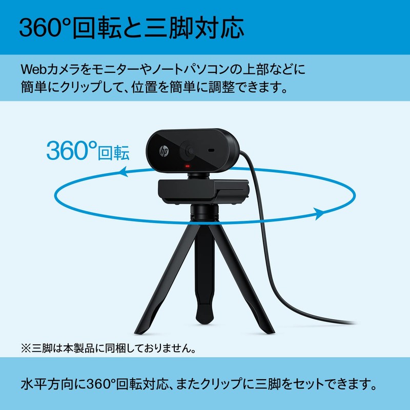 HP 320 FHD Webcam, 1080p, 30fps, Fixed Focus, Single Microphone, USB Type-A, 360° Swivel, 66° Field of View, Tripod Ready, Compatible with Windows, macOS, ChromeOS (Black, 107g), 53X26AA
