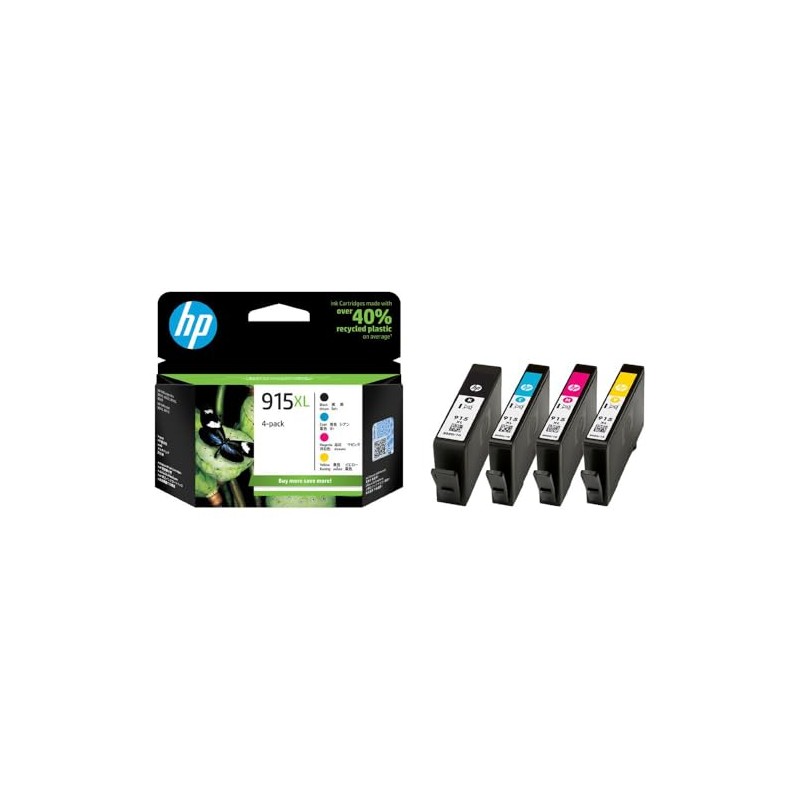HP 915XL Genuine Ink Cartridge 4-Piece Set, Black/Cyan/Magenta/Yellow, 825 Pr...
