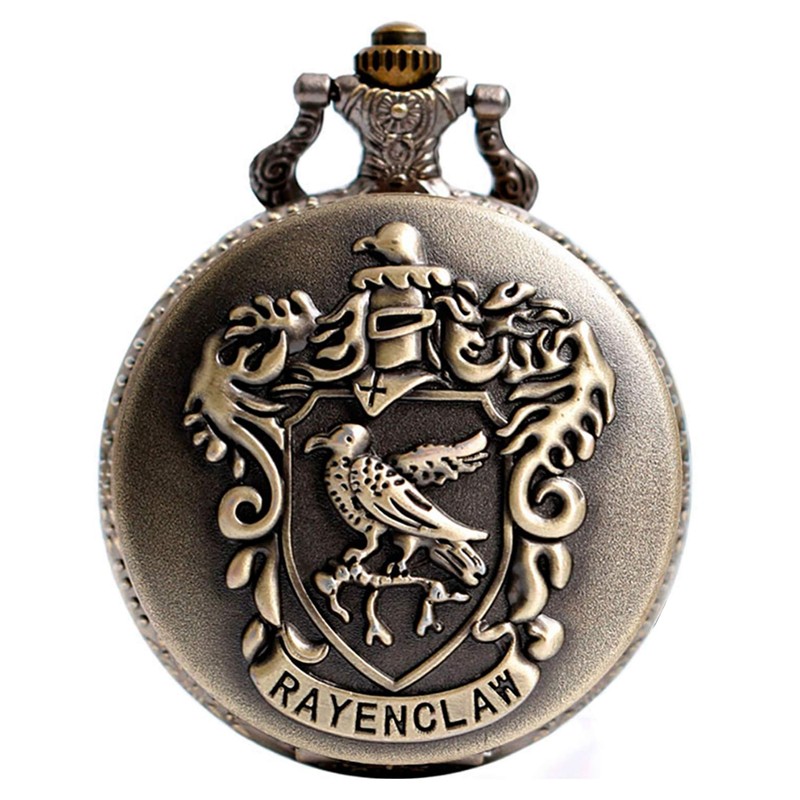 HP Pocket Watch Bronze Ravenclaw Quartz Pocket Watch with Chain for Men Women Children Xmas Gift
