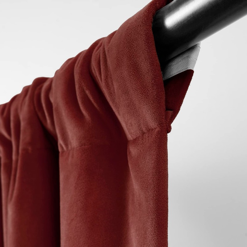 - Color & Texture: This Crimson Rust color is a perfect choice for your home decor. This curtain is Plush Blackout Lining and is backed with smooth off-white fabric.
