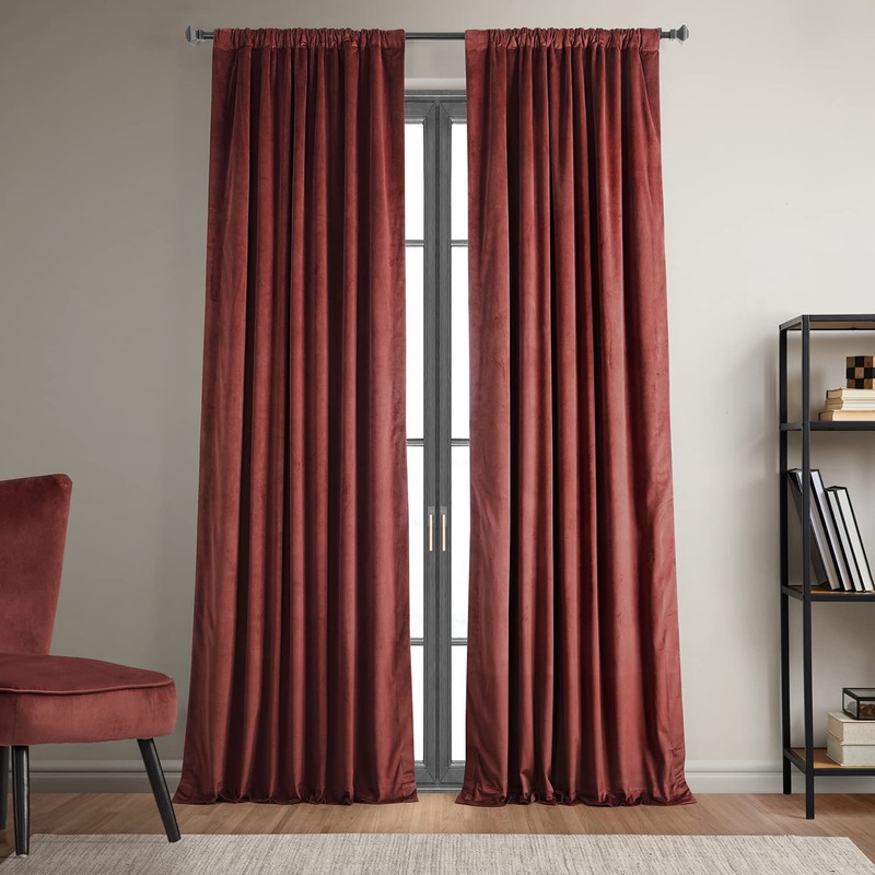 HPD Half Price Drapes Signature Blackout Velvet Curtains 96 Inch Long (1 Panel) 4-Pass Hotel Blackout Lined Window Curtains Thermal Blackout Curtains for Bedroom, Living Room, 50W x 96L, Crimson Rust
