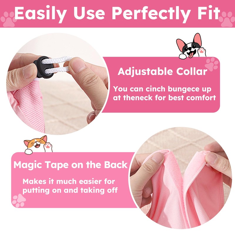 - 【Easy to Use】Breathable surgical recovery shirt features adjustable neck elastic band and back velcro tape design, it is easy for your pet to wear, and you can adjust it to the appropriate size to fit your cat's body type. The larger rear opening enables cats to use the litter tray without removing the garment, keeping them comfortable and mobile while protecting floors, beds, and rugs from stains and damage.
