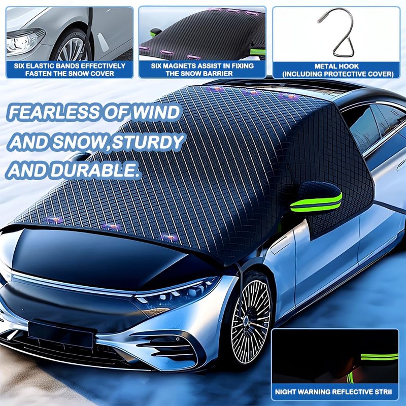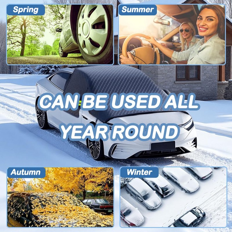 - 🚗【Ganzjähriger Schutz】 Alle Jahreszeiten verfügbar. Es schützt die Windschutzscheibe Ihres Autos im Winter vor starkem Schnee und schützt Ihr Auto auch vor der Sonneneinstrahlung im heißen Sommer, wodurch die Temperaturen im Inneren zu hoch sind.