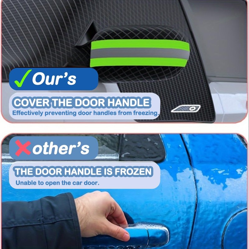 - 🚗 【Frostschutz-Pad-Windschutzscheibe】 Auto Frontscheibenabdeckung deckt drei Fenster, um effektiv zu verhindern, dass der Türgriff einfriert, schützt die Autoscheibe vor Schnee, Gefriere und Eis, im Winter ist der Schnee auf der Abdeckung dicker, kann auch das Glas und den Körper trocken halten.