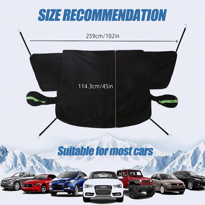 - 🚗【Größe】Extra Dick Autoscheiben Abdeckungen Winterdie Größe von 259cm * 114cm und eignen sich für allgemeine Fahrzeuge und die meisten SUVs. Der Rand-Fixierband ist für eine einfache und sichere Fixierung konzipiert, und die Saugplatte ist einfach und besser für Ihr Auto geeignet.