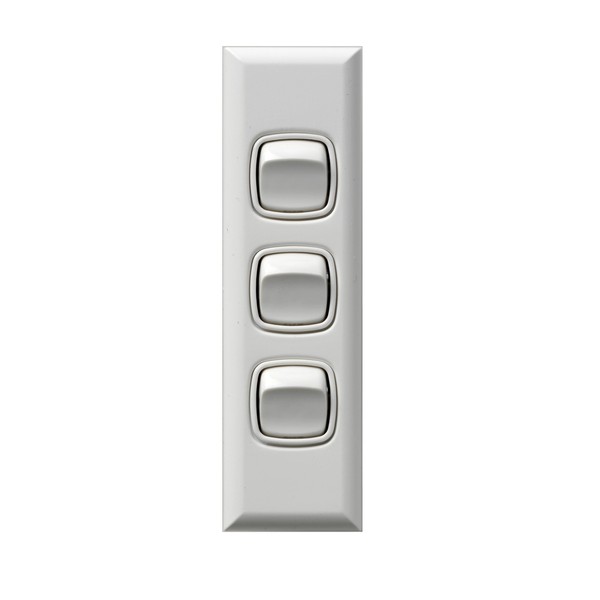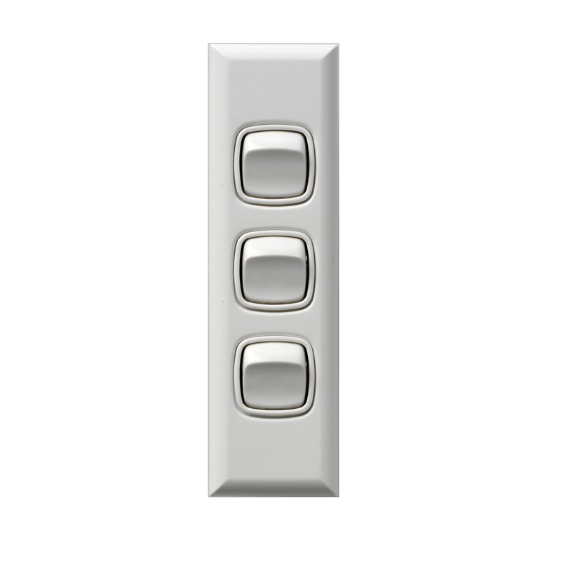 HPM 10 A 240 VAC 3 3 Gang Architrave Switch, Matt White
