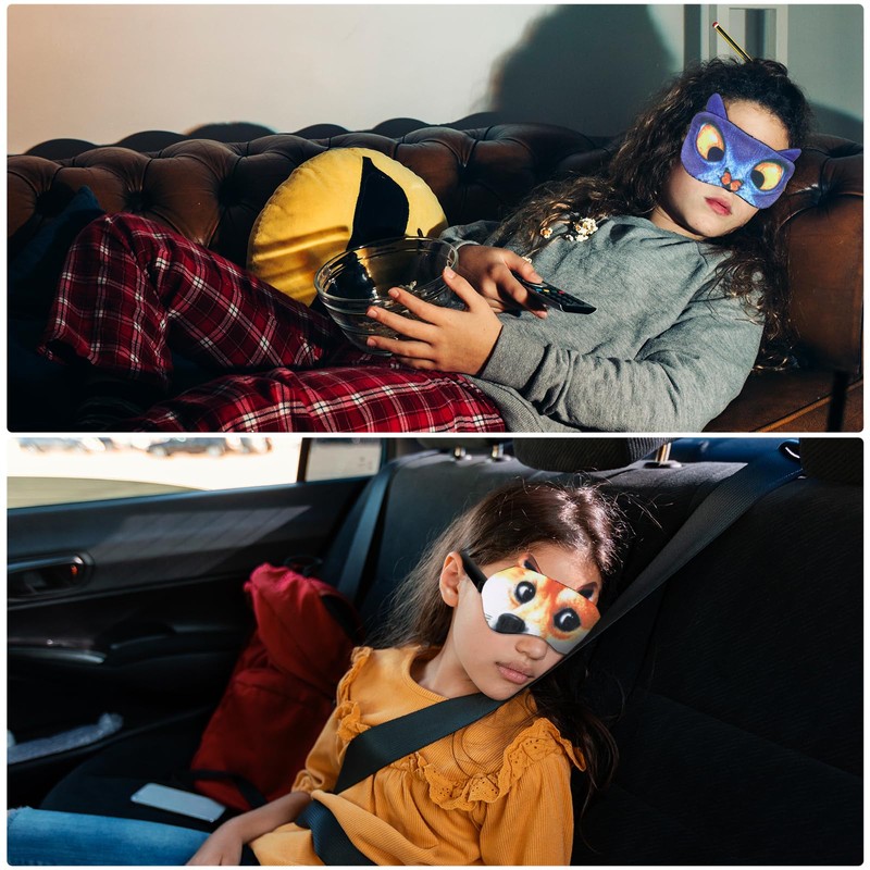 - 【Comfortable Fit】The night eye mask' easily adjustable headband is flexible and durable, designed to provide a comfortable fit for most head shapes. The highly elastic strap ensures the girls' sleep mask won't get tangled in hair or slip off during sleep, airplane eye mask provides a one-size-fits-all solution.