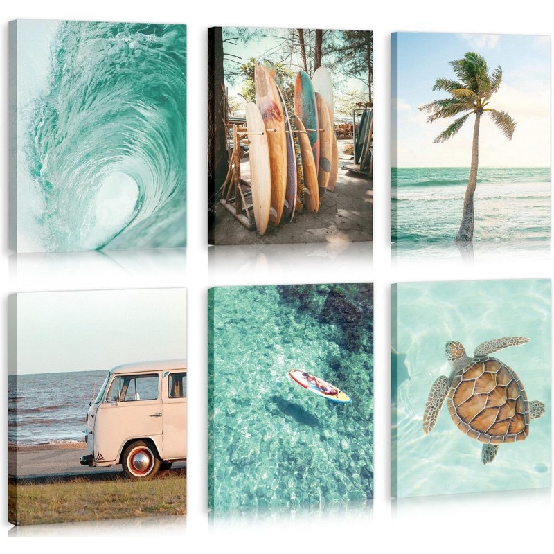 - Hochwertige Materialien:Die maritimen Surf-Motive werden auf hochwertiger Leinwand gedruckt, sind wasserfest sowie UV- und verblassungsbeständig. Der stabile Naturholz-Rahmen ist bereits montiert - einfach aufhängen und genießen