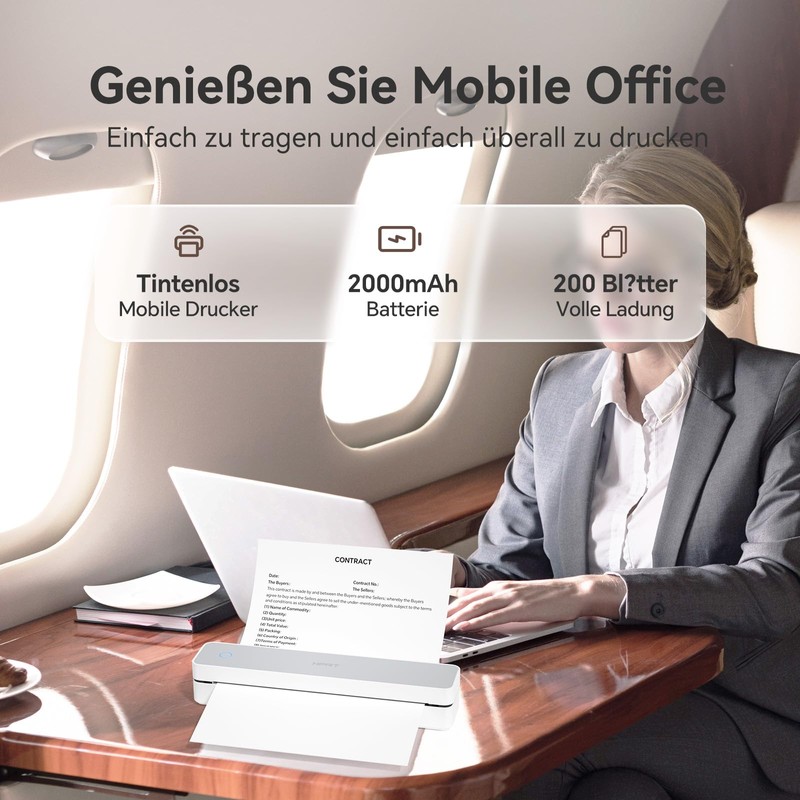 - Portable and print anywhere: portable thermal printer with a total weight of 530 g, which makes it easy to carry around, fit in your bag or briefcase and print anywhere. Great tool for travel, work, business, home, car or school