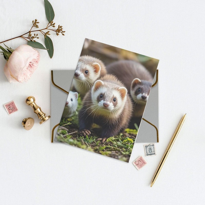 HQaxsfQxnr Greeting Cards Blank Note Cards with Gold Edge Envelopes Thank of You Card Ferrets Greeting Cards Folding Blank Card for Holiday Blank Greeting Note Cards for All Occasions