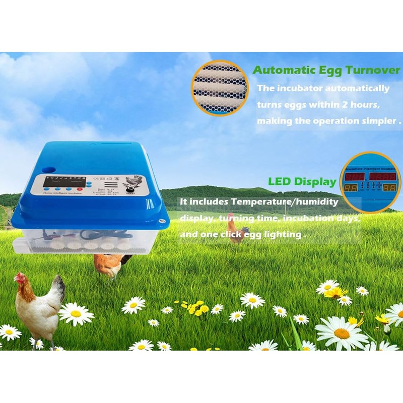 - LED Display Screen: The LED display screen includes temperature/humidity display, egg turning time, incubation days, and one click egg lighting functions.