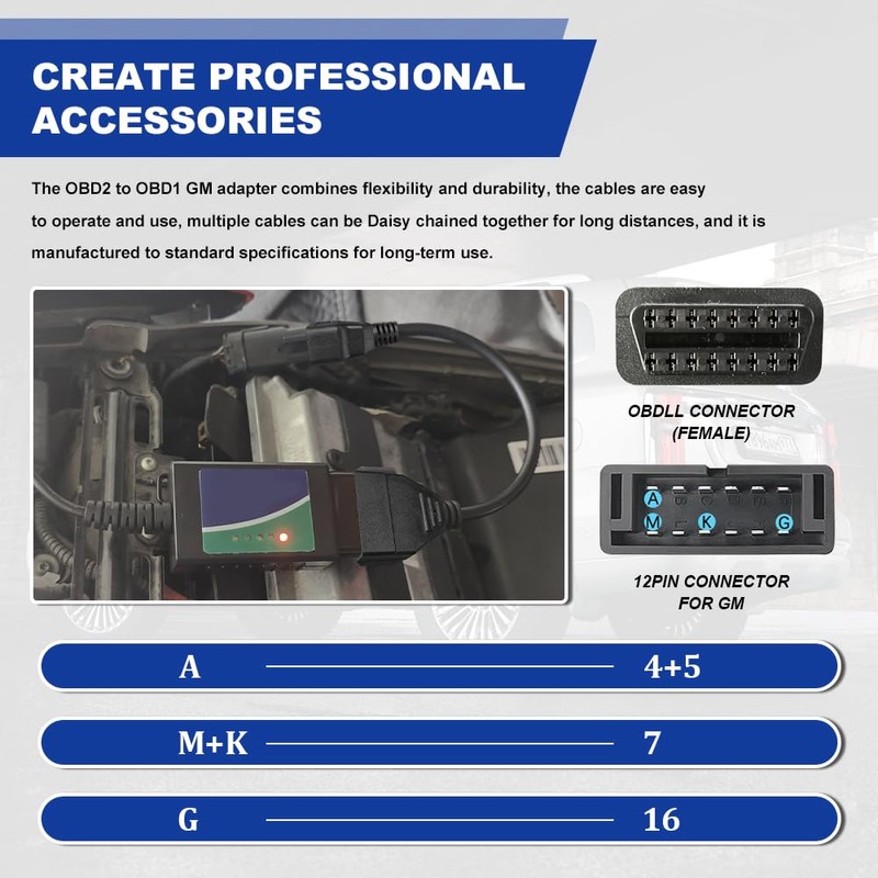 - It can connect OBD1 12-pin interface vehicle and OBD2 16-pin diagnostic tool, stable transmission and anti-interference.