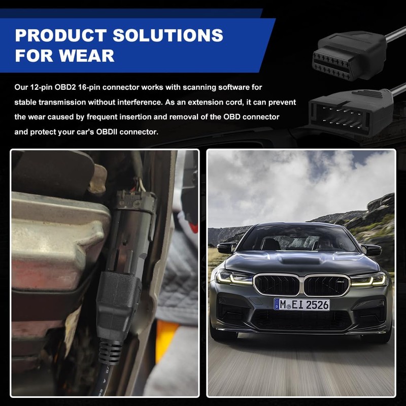 - Products include: you will receive an OBD extension tool, with 12 pin male connector and OBDII 16 pin female connector, durable and reliable, it can also reduce the OBD connector wear caused by frequent plugging and unplugging, very worth to use