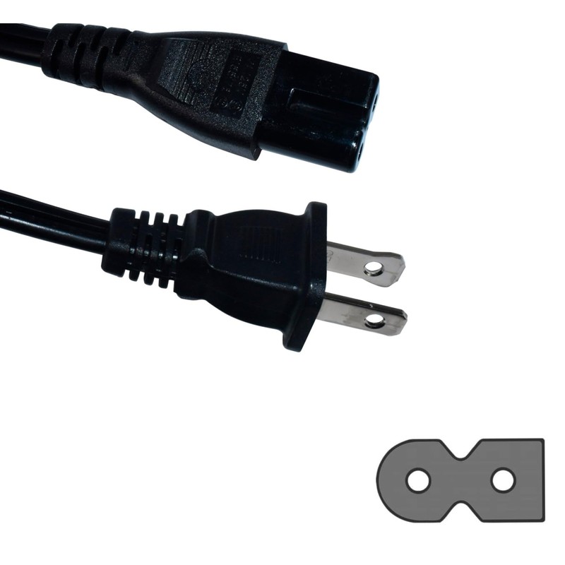 - Connectors: IEC C7 polarized to NEMA 1-15P;