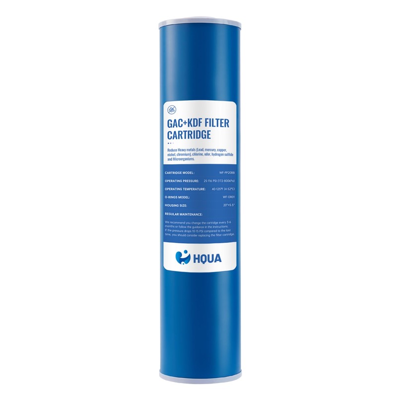 HQUA Whole House Compound Replacement Filter Cartridge, WF-GK20BB, GAC+KDF, Kinetic Degradation Fluxion, Granular Activated Carbon