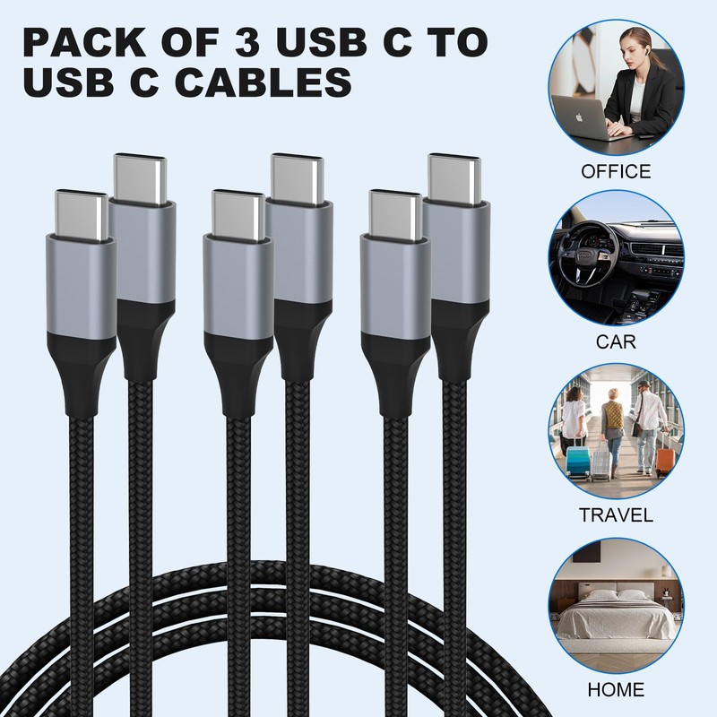 - Perfect length combination:3ft USB C to USB-C cable*1 pack + 6ft USB C to USB-C cable*2 pack, suitable for charging at various distances! Meet all your usage occasions, such as home, office, or car.