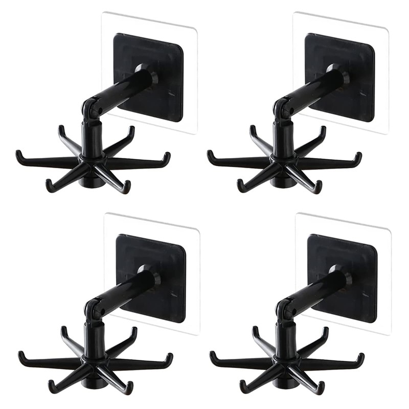 HREDZEO Rotating Folding Hook,4 Pcs 360°Rotating Folding Hook Kitchen Hole-Free Wall Rotating Shelf Kitchen Hook Rotating Hook for Kitchen Bathroom