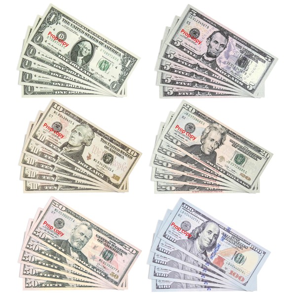 - 【Contents of the set】 The set contains 7 different banknotes: $1, $5, $10, $20, $50 and $100, 25 pieces of each bill, total 150 pieces.