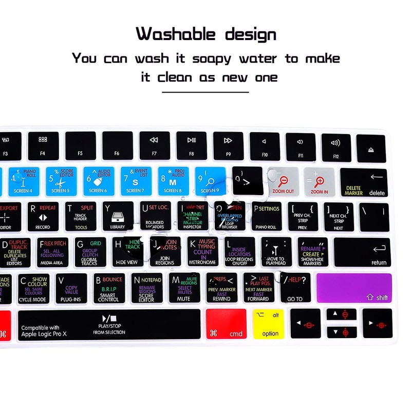 HRH Logic Pro X Functional Shortcut Hotkey Keyboard Cover Silicone Skin for Magic Wireless Keyboard MLA22LL/A (A1644,2015 Released) with US Layout