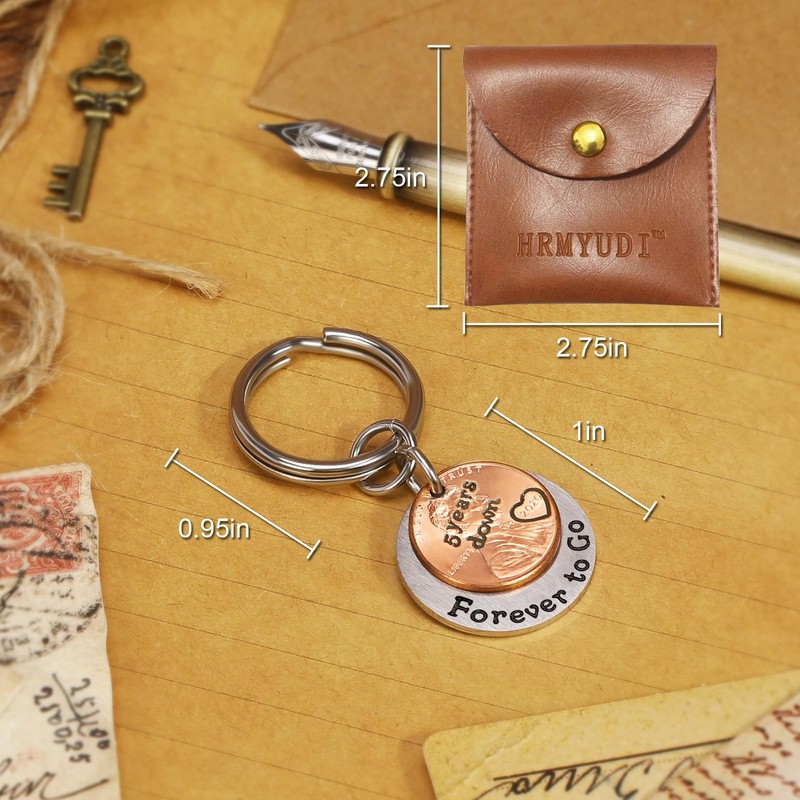 HRMYUDI 5 Years Anniversary Wood Wedding Gift for Man Woman, Coin Keychain with a 2020 Penny, 5 Years Down and Forever To Go, Fifth Wood Wedding Anniversary Presents for Him Her