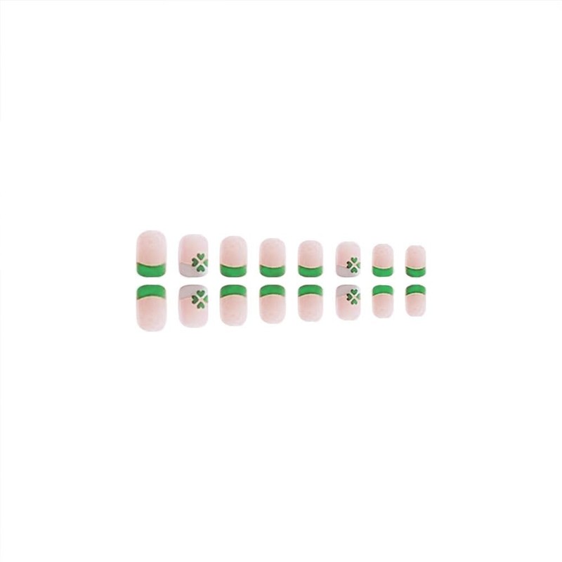 Hrnsnails St Patricks Day Nails - French Tip Press On Nails Short Square Fake Nails with Green Four Leaf Clover Design, Artificial Nails Stick On Nails for Women-24Pcs